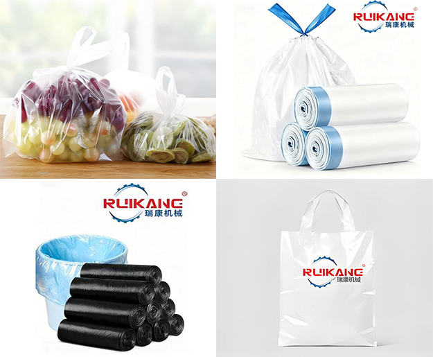 A: Our machines can produce a wide range of plastic bags, including flat bags, T-shirt bags, vest bags, garbage bags (roll or flat), shopping bags, and custom-shaped bags. The specific types depend on the model—basic models handle standard bags, while advanced models support gusseted bags, handle bags, or biodegradable material bags. View all bag types with sample images to find the right match for your business.